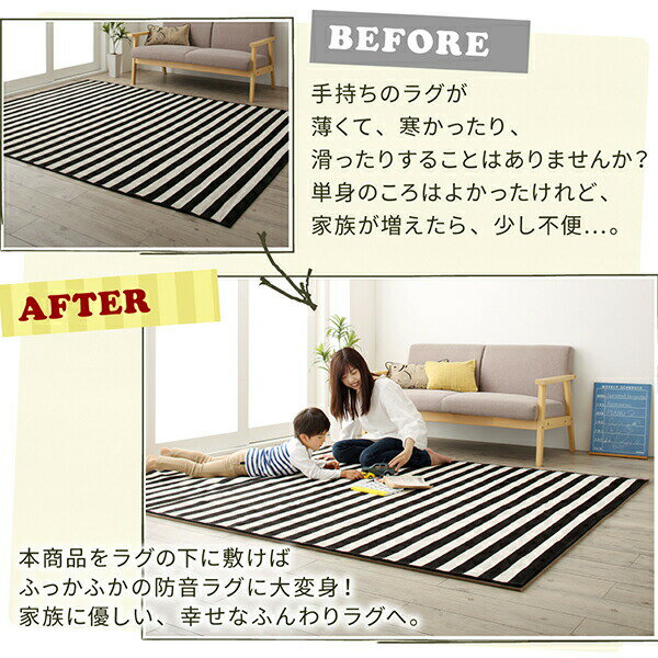 薄くて滑りやすいラグの下に敷けば、しっかりとした防音ラグになります。