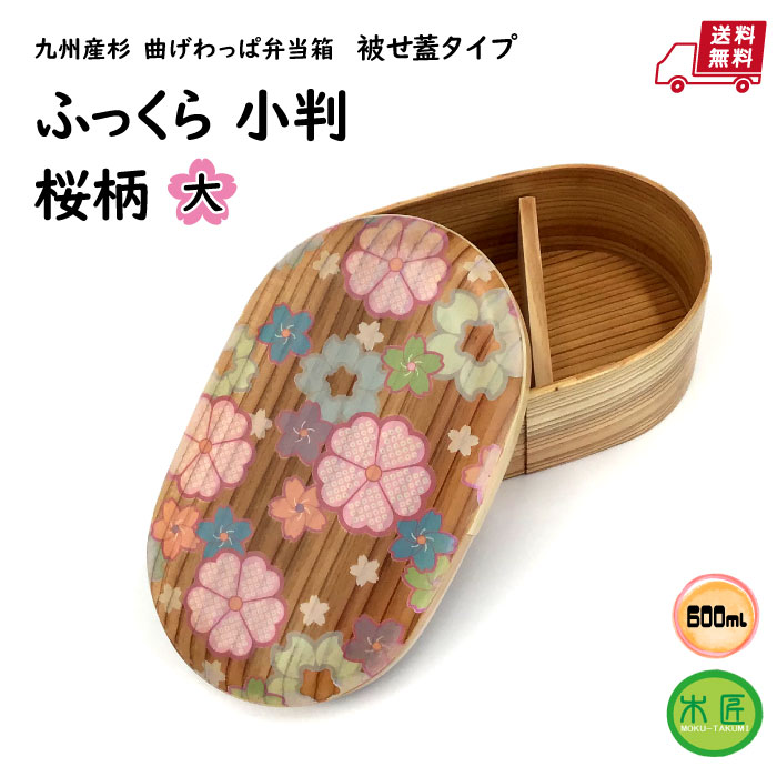 【送料無料】 国産杉 曲げわっぱ 楕円型弁当箱 600ml 杉柾目 ふっくら小判 楕円大 桜柄 被せ蓋セット 仕切り付 おしゃれ 木製 日本製 曲げわっぱ弁当 小判型 お弁当箱 おべんとう ランチ 昼食 一段 わっぱ弁当 まげわっぱ 女子 大人 弁当箱 かわいい 曲げわっぱおしゃれ